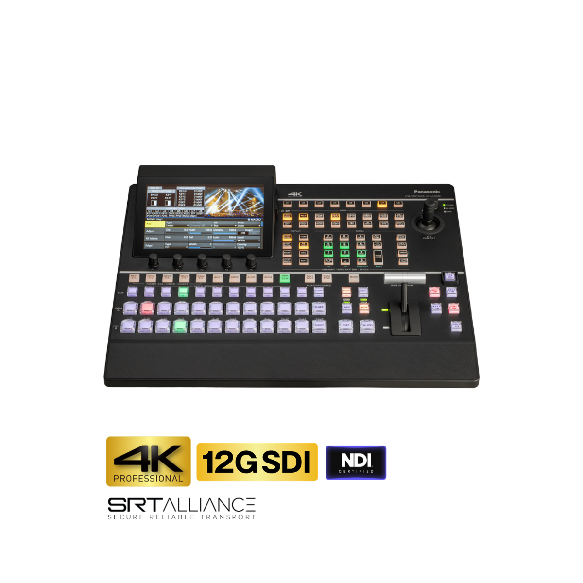 El 4K Live Switcher AV-UHS500 compatible con 12G-SDI tiene casi todas las funciones básicas de un modelo grande de gama alta y es capaz de producir video 4K con la misma operatividad que HD. Su cuerpo integrado es increíblemente portátil, lo que lo hace ideal para música, deportes, entretenimiento y otros eventos en vivo. Además del soporte multiformato 4K/3G/HD, la instalación de unidades opcionales adicionales permite la expansión a hasta 16 entradas SDI para permitir un funcionamiento sin problemas en eventos con muchas cámaras.