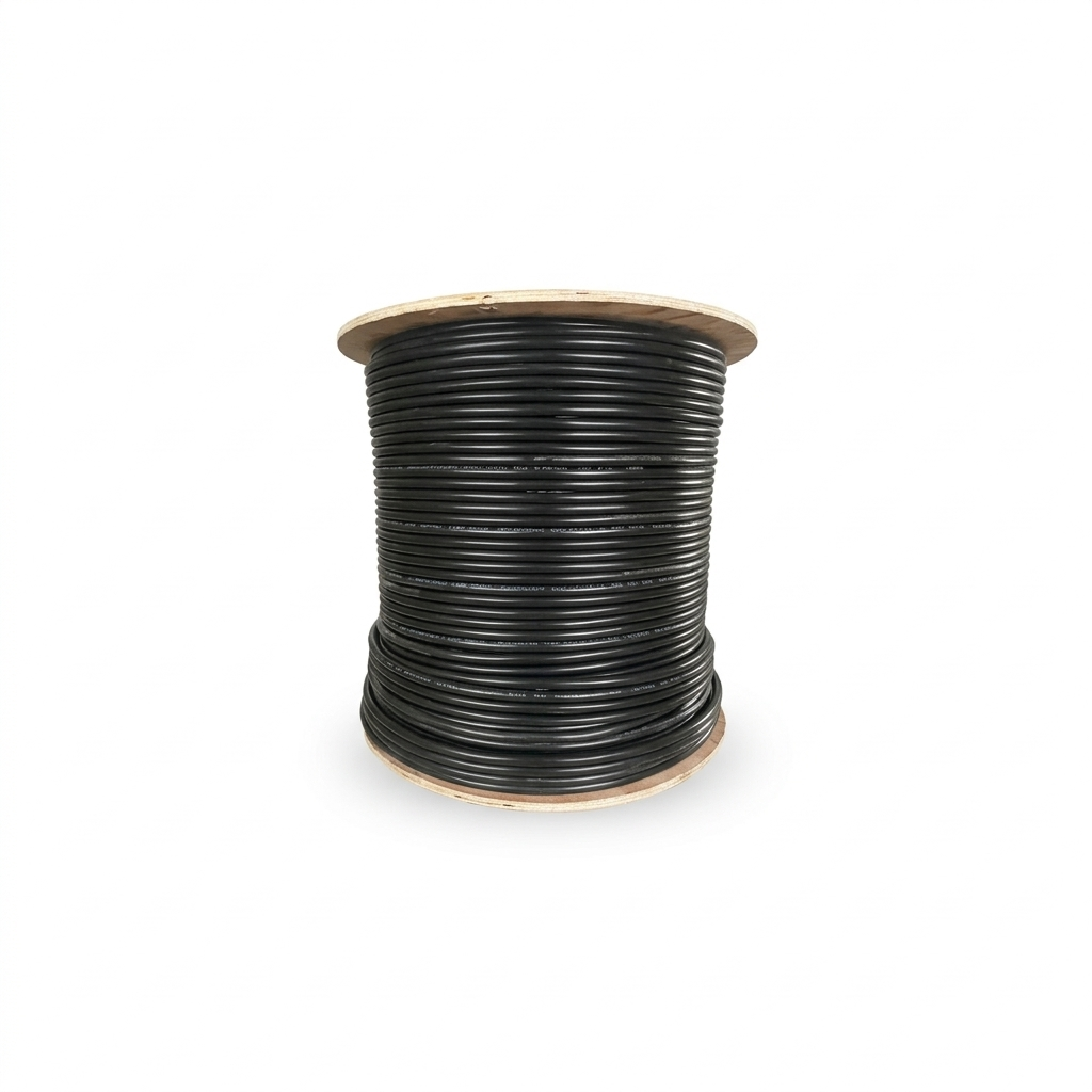 Cable FTP categoría 5E para exterior 305 mts., 4 pares 24 AWG CCA, chaqueta PE color negro.